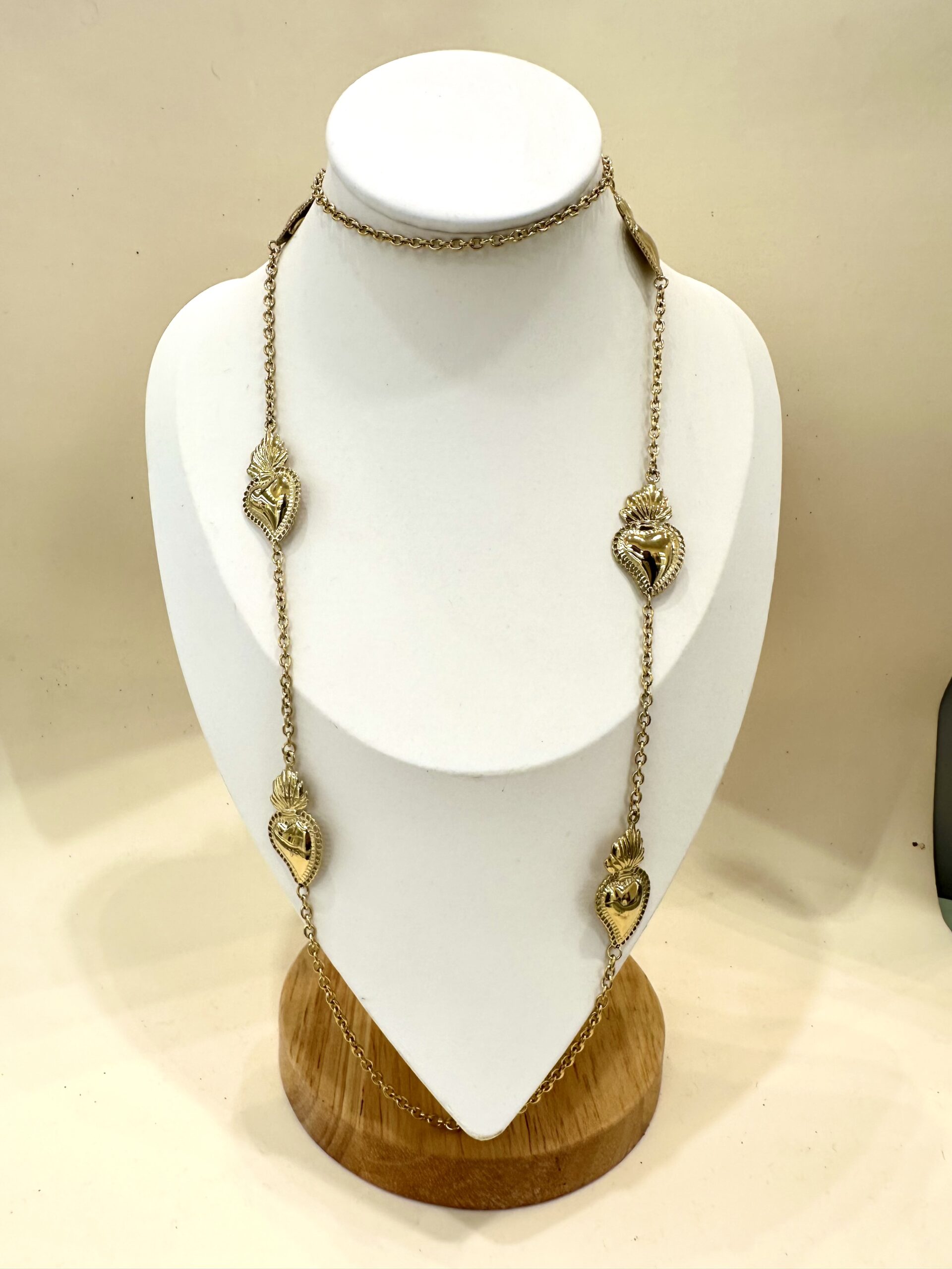 Catna lunga oro in acciaio inox placcato con cuori sacri. Nickel Free