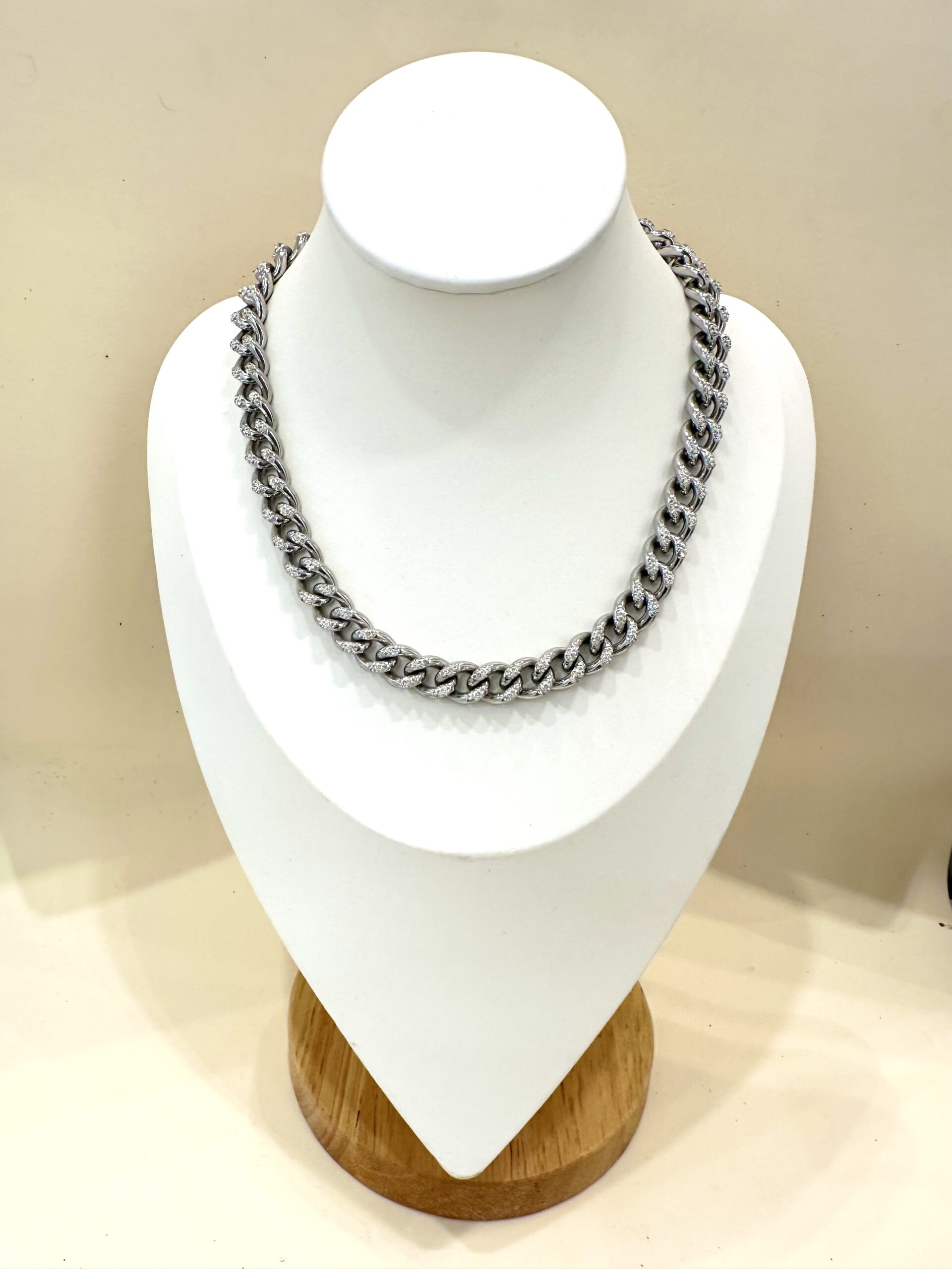 Catena maglia con zirconi in acciaio inox. Nickel free