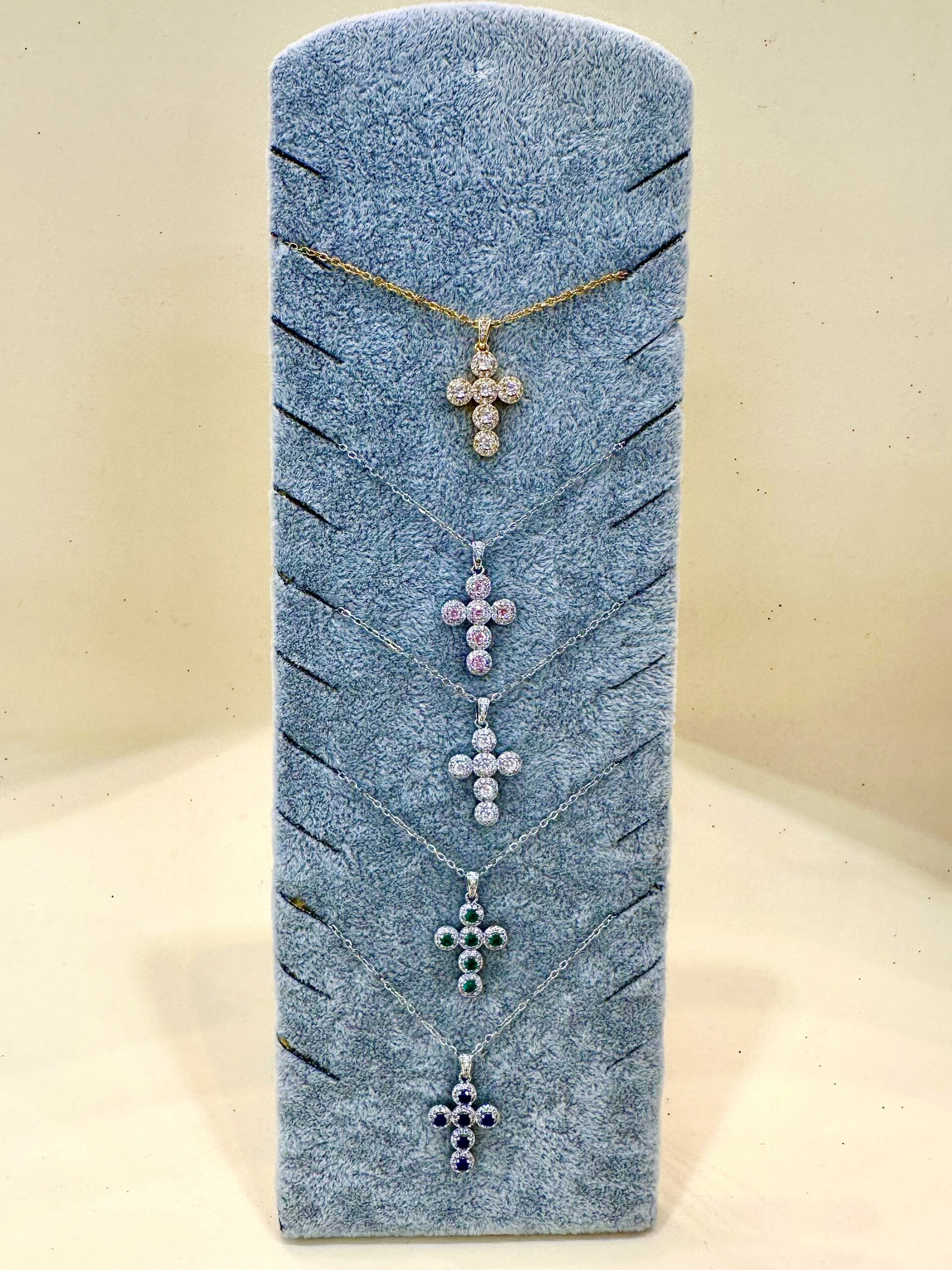 Catenina in acciaio inox con croce zirconi disponibile in acciaio placcato oro e acciaio inox