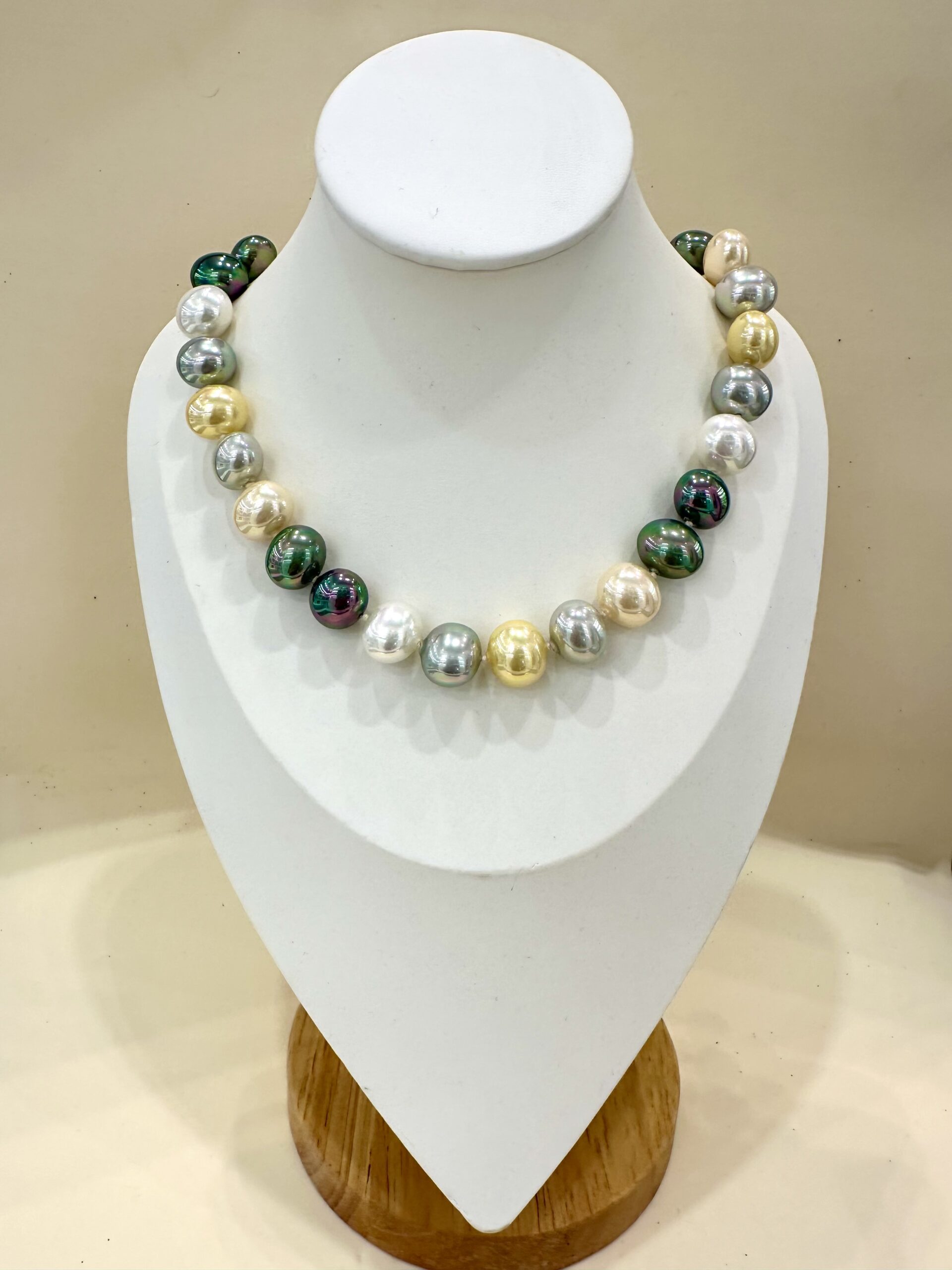Collana perle Maiorca colorate e olografiche con chiusura in acciaio inox.