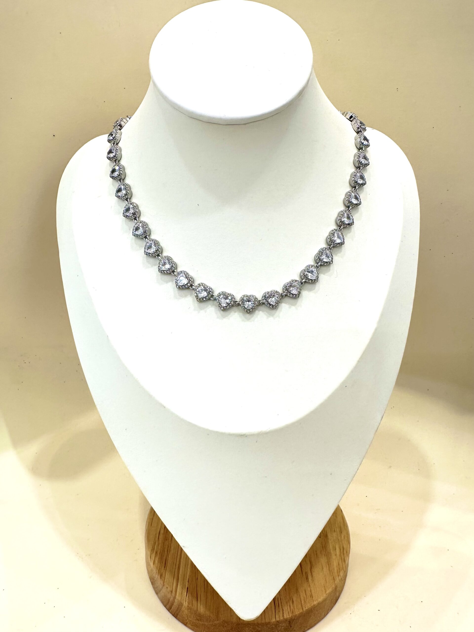 Collana girocollo con cuoricini di zirconi in acciaio inox. Nickel free