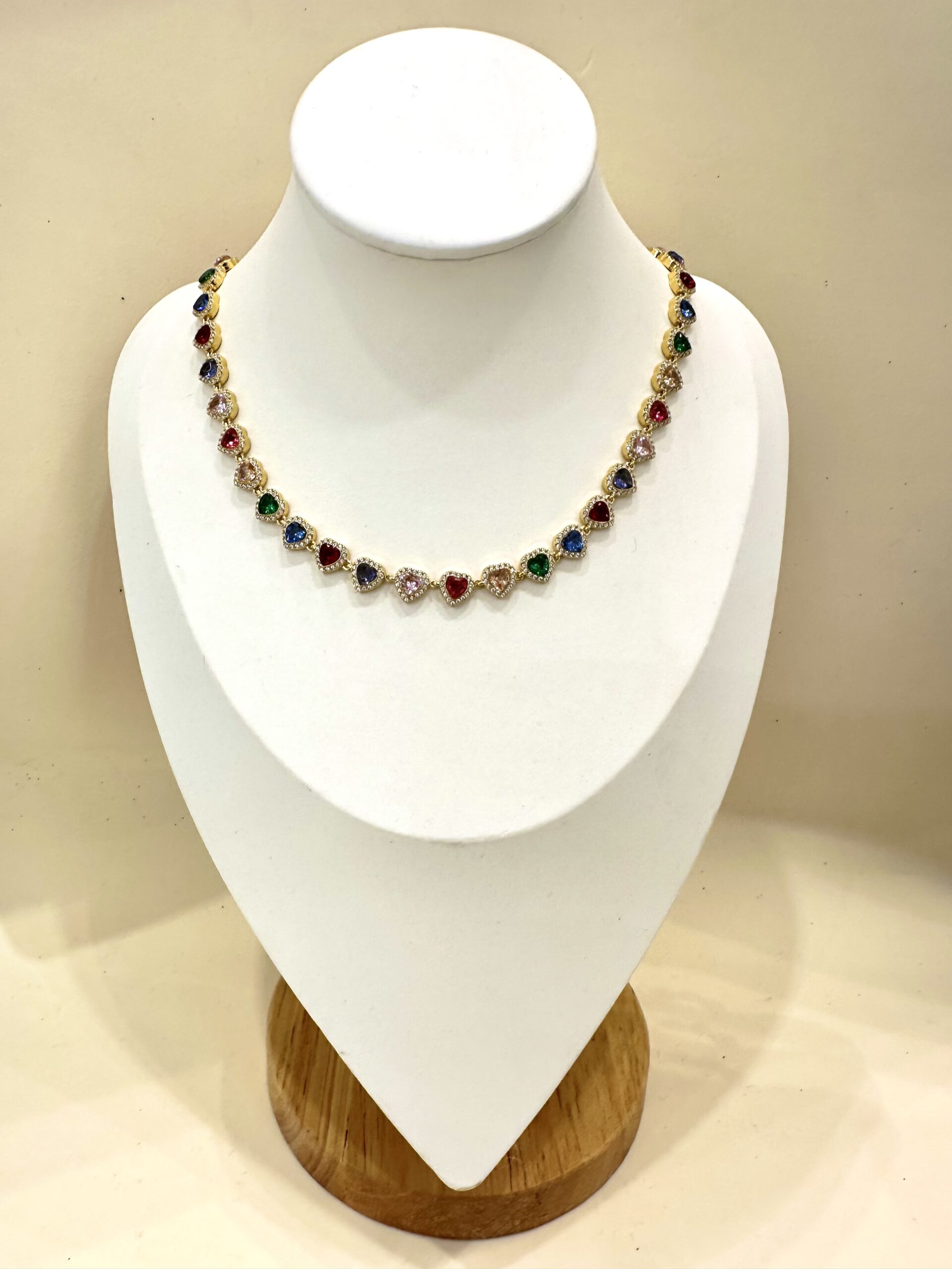 Collana con zirconi a cuore multicolor in acciaio inox placcato oro