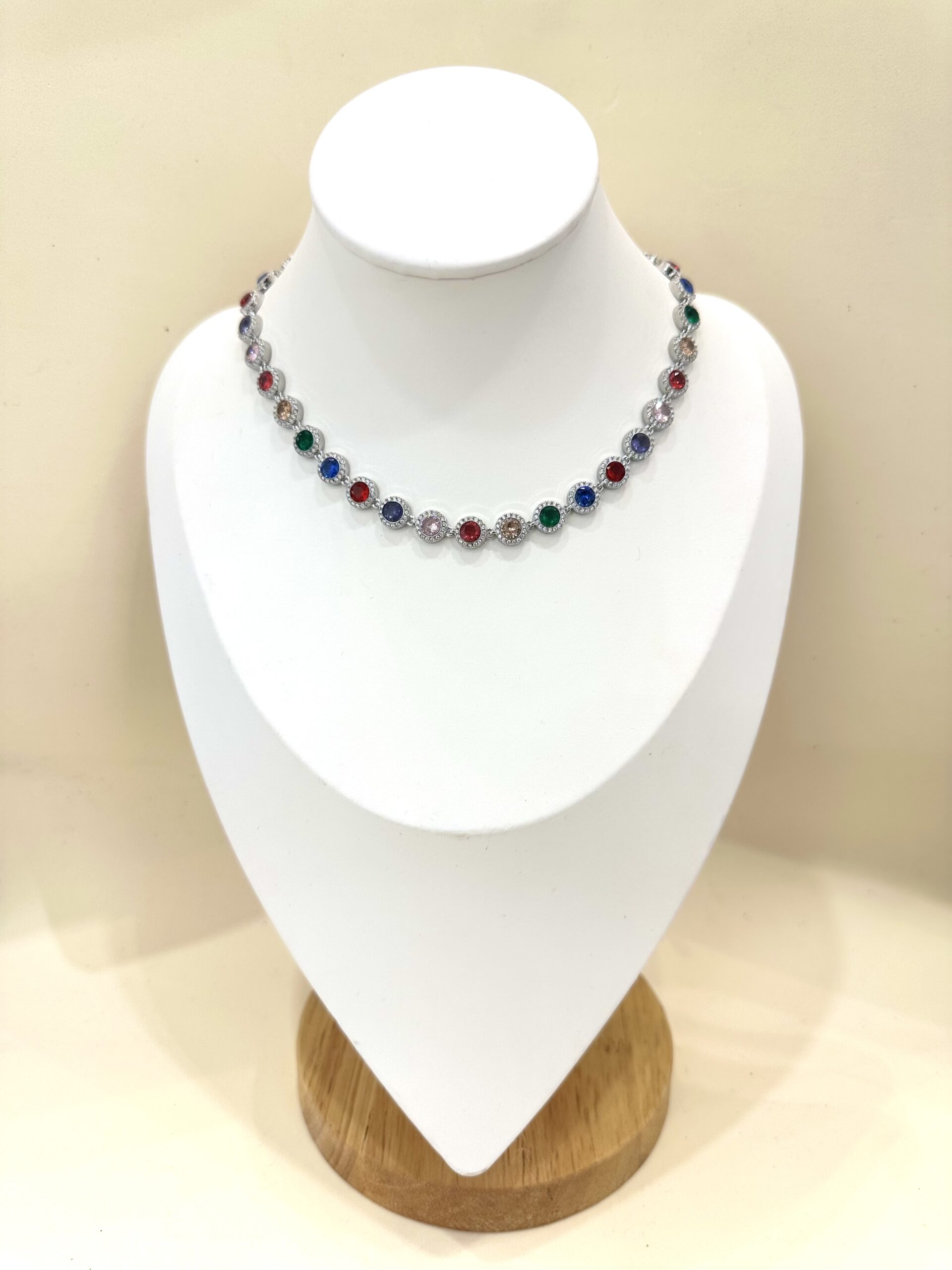 Collana con zirconi rotondi multicolor in acciaio inox