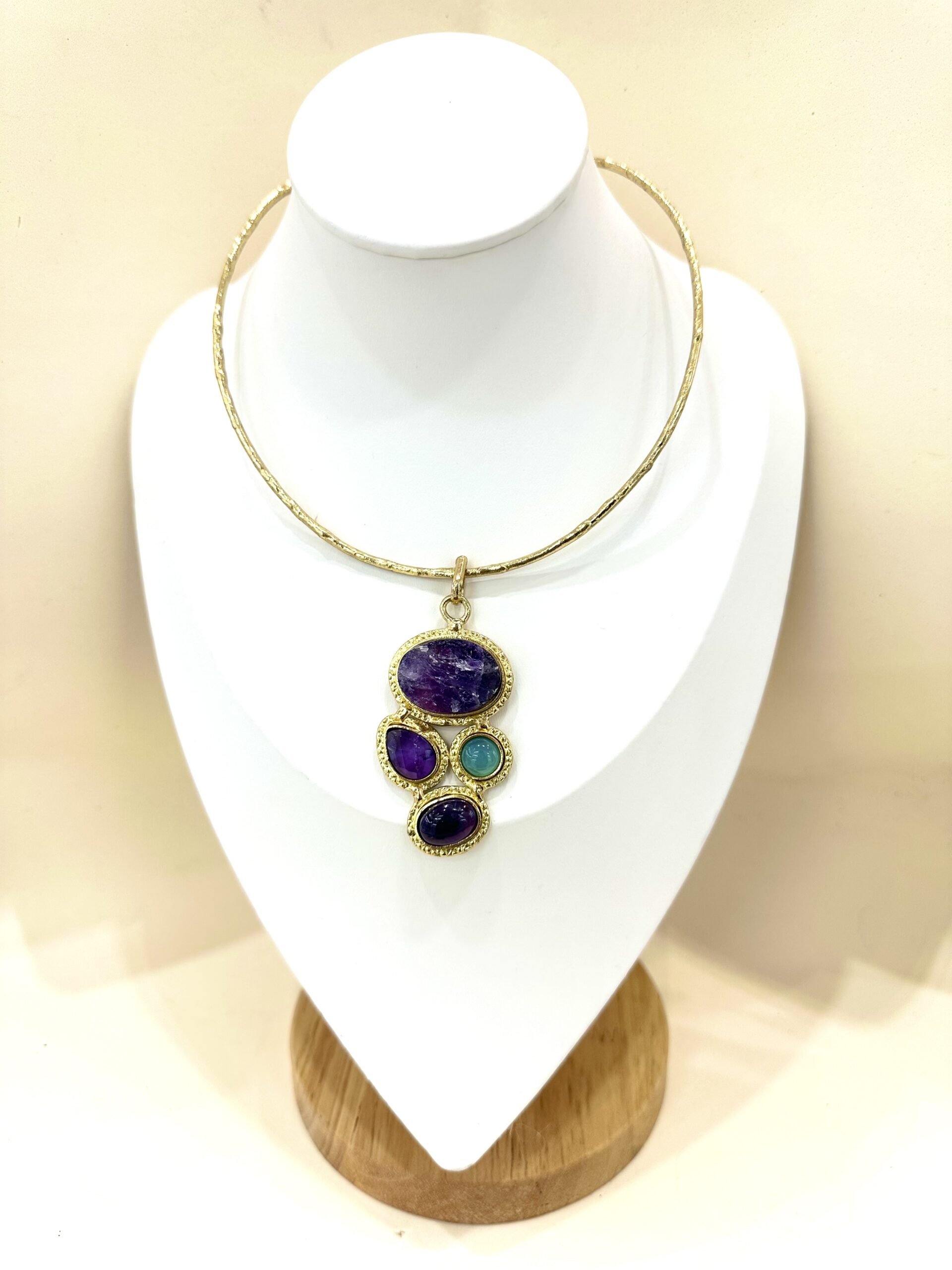 Collana rigida con pendente con pietre dure